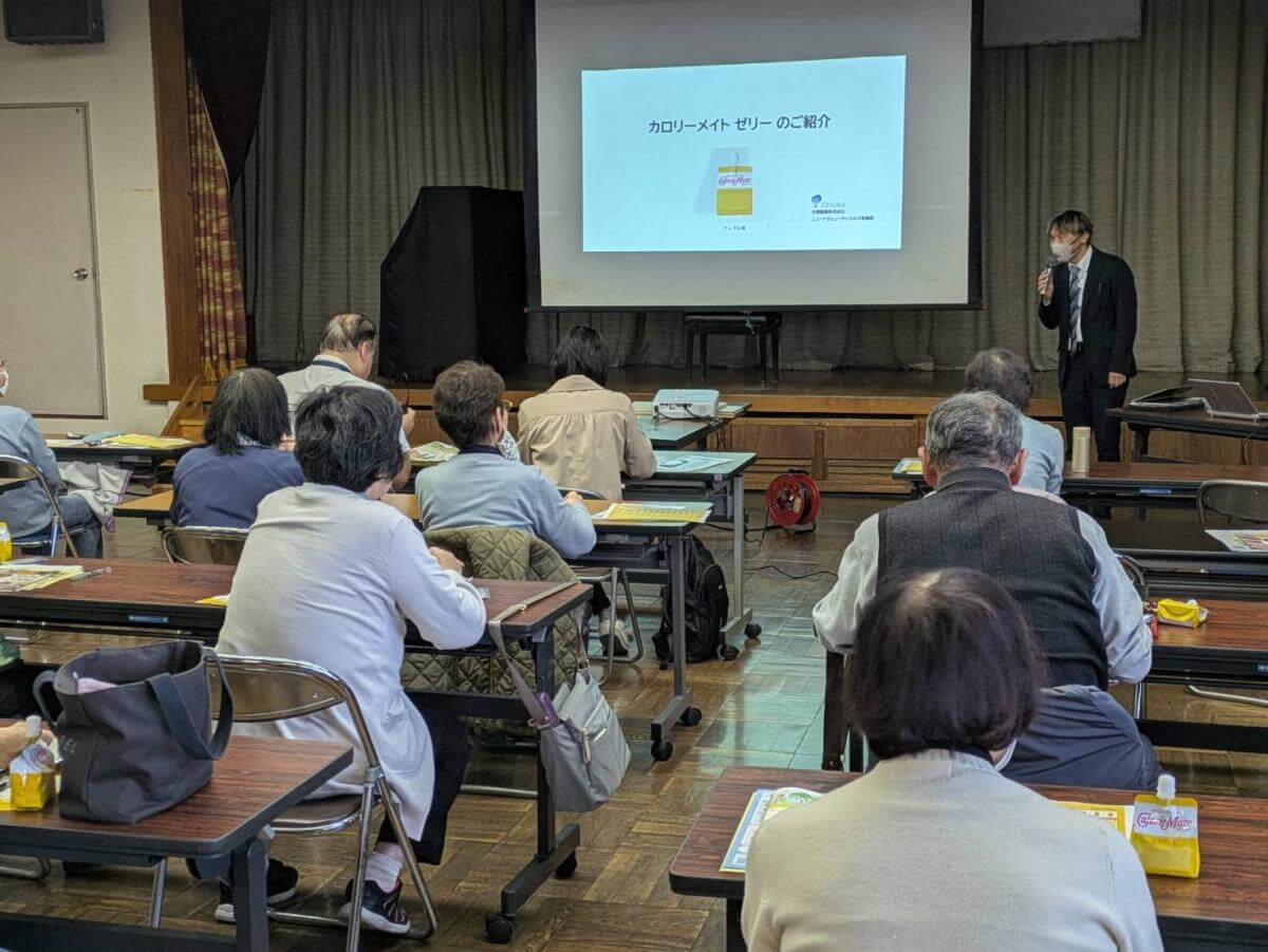 令和7年10月30日(木)に粕壁地区フレイルサポーター勉強会を開催しました。フレイル予防で大事となる栄養に関する勉強会で、テーマは「食べて、伸ばして、健康寿命」、東邦薬品管理栄養士より講義をして頂きました。たんぱく質が含まれる食品や摂り方など学ぶことができました。また、大塚製薬様よりカロリーメイトゼリーの紹介をして頂きました。これからもフレイル事業に努めていきます。