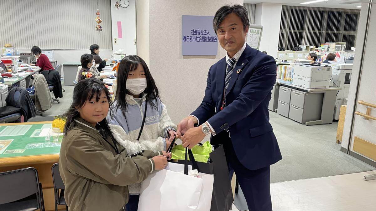 令和7年12月11日(木)、春日部市ガールスカウト連絡会様から雑巾110枚、布巾20枚、タオル10枚をご寄贈いただきました。