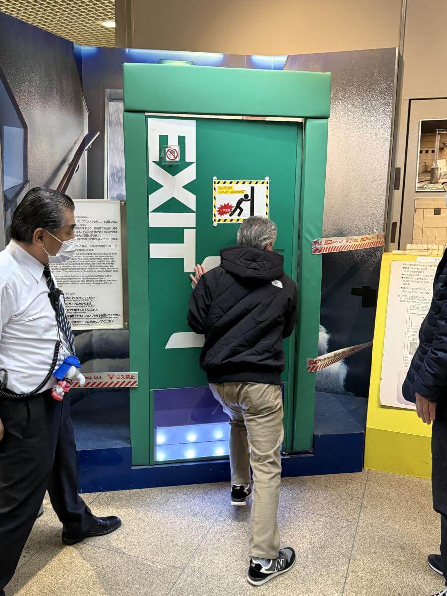 今年は東京都墨田区にある本所防災館にて、防災に関する知識や技術を学びました。関東大震災の記録を視聴した後、地震の揺れの体験、暴風雨体験、都市型水害体験、火災の煙からの避難を体験しました。