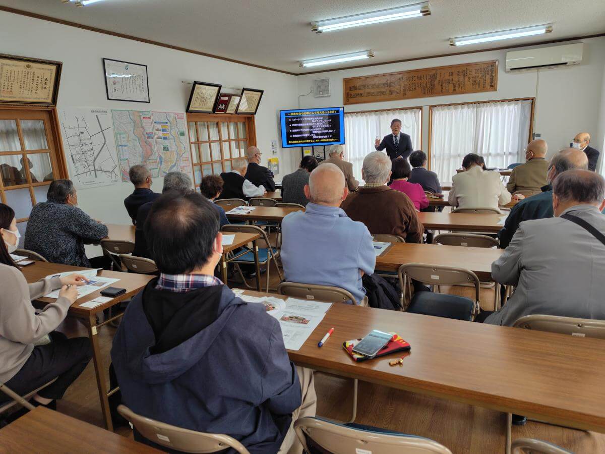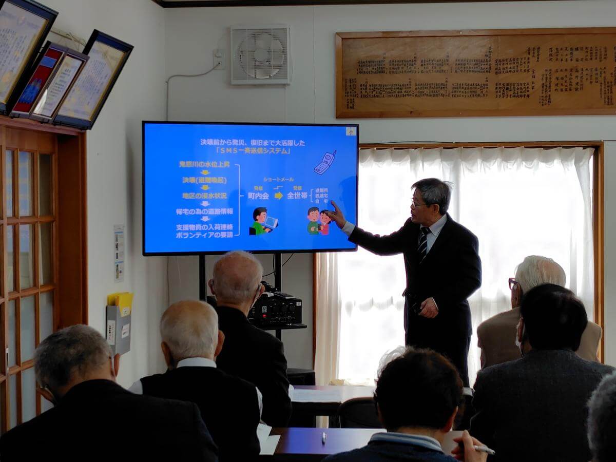 今年は茨城県常総市の根新田町内会を訪問し、防災のまちづくりについてお話を伺いました。2015年9月関東・東北豪雨による鬼怒川の決壊で被害を受けており、当時の様子や思いを伺うことが出来ました。